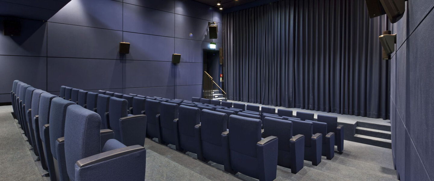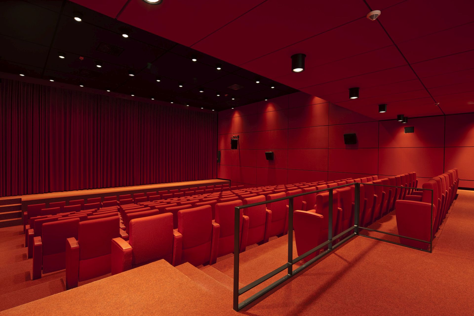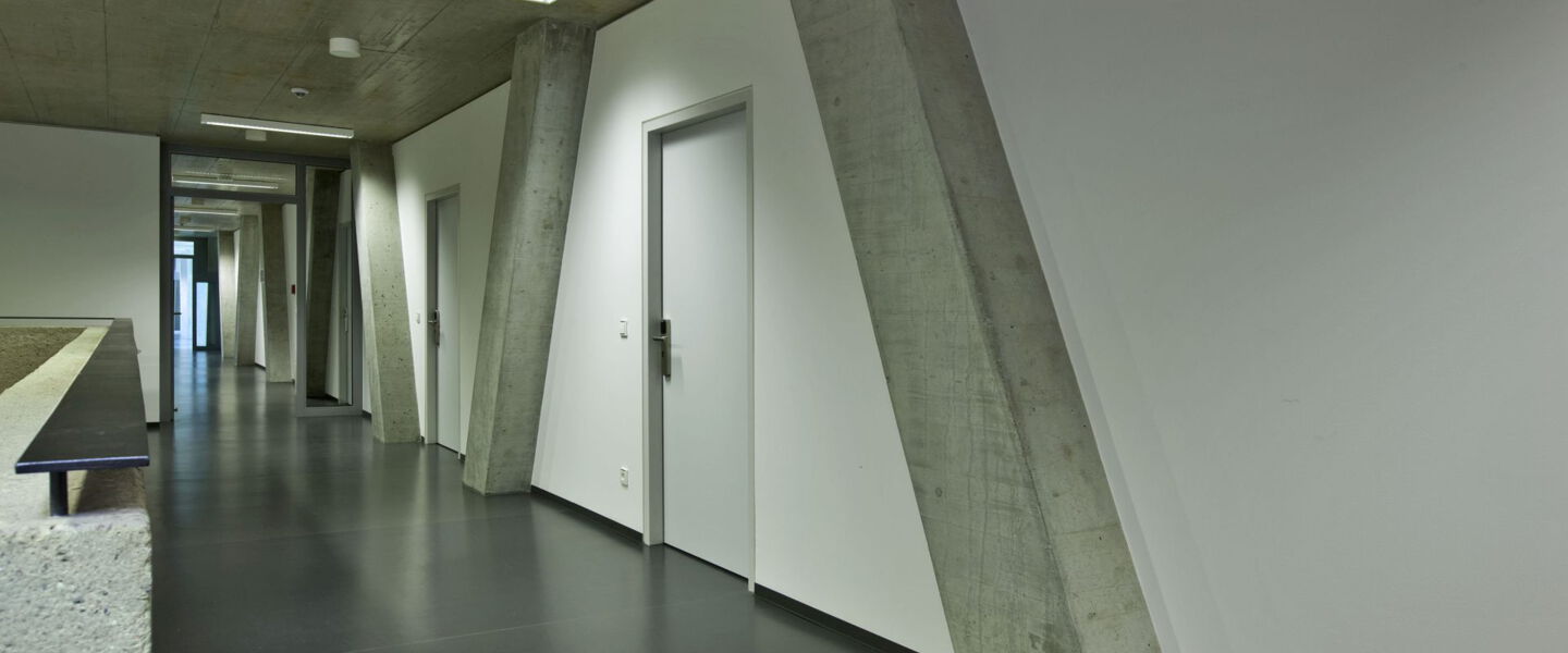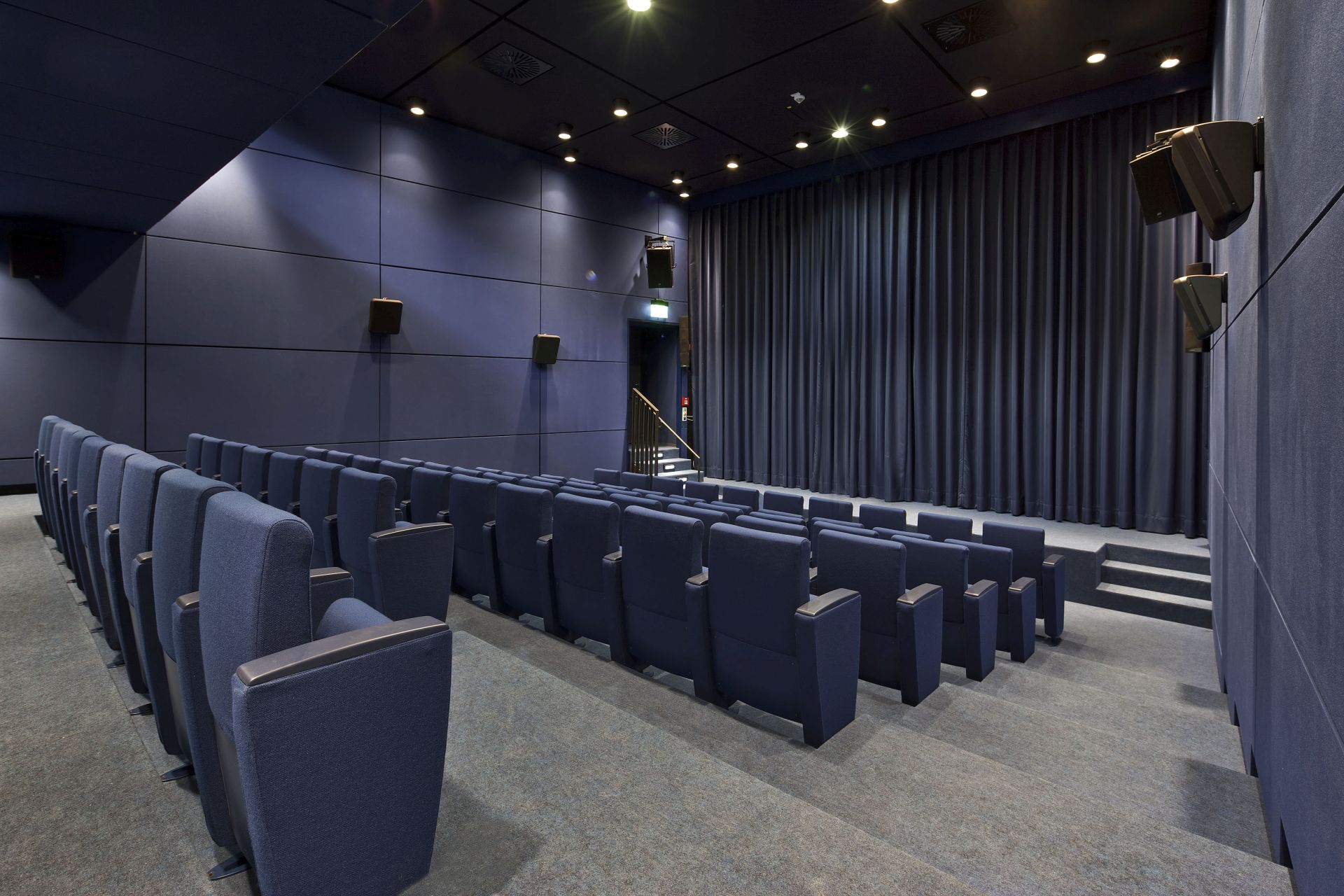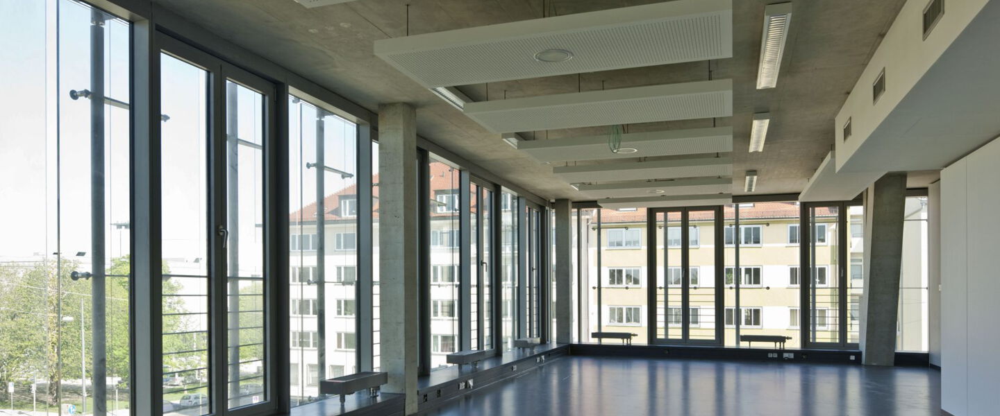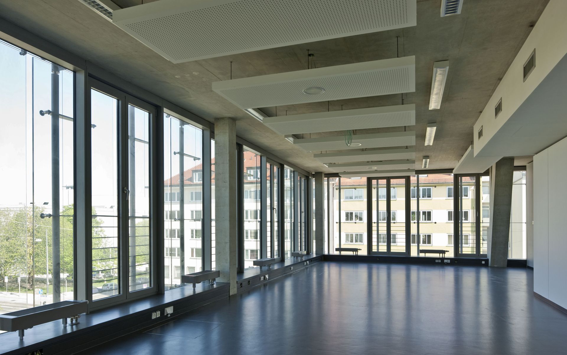 Der Baukörper erstreckt sich entlang der Gabelsbergerstraße auf einer Länge von etwa 150 m, einer Breite von 20 m und einer Höhe von 20 m. Auf einer Hauptnutzfläche von etwa 9.200 m² wurden neben Verwaltungsbereichen moderne Ausbildungsräume, Film- und TV-Studios, Kinos, Postproduktionsräume und eine öffentlich zugängliche Bibliothek geschaffen.