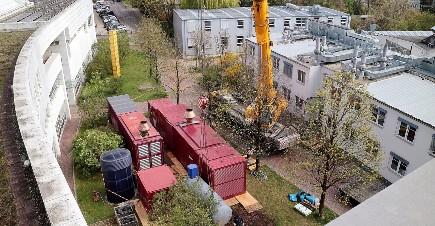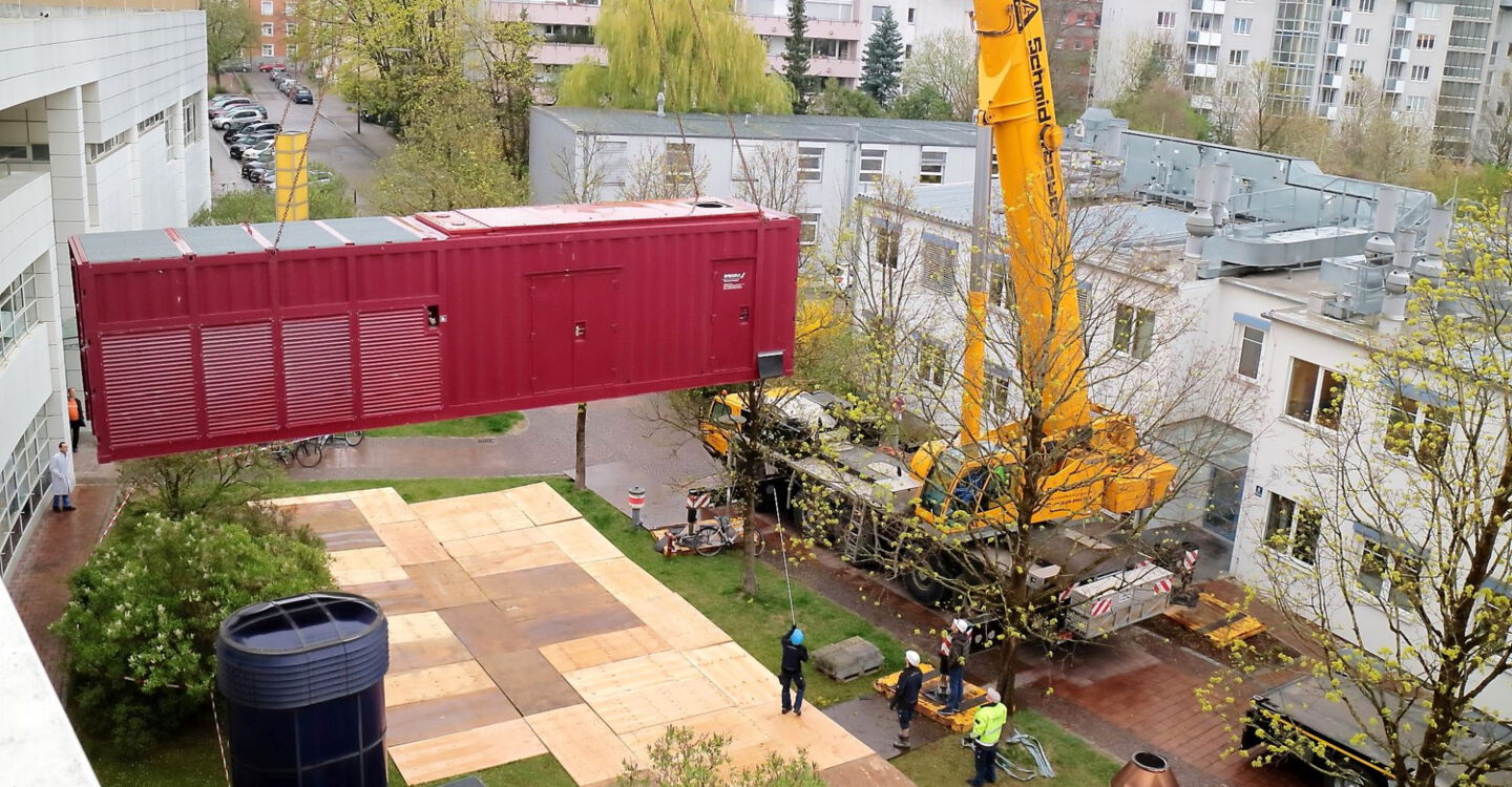 Mit diesen bestehenden Netzersatzanlagen war eine gesicherte Versorgung des derzeitigen Leistungsbedarfs unter Berücksichtigung des (n–1)-Kriteriums nicht mehr möglich. Die Masterplanung für die Entwicklung des Klinikums beinhaltet Baumaßnahmen, die zukünftig zu einer weiteren Steigerung des Sicherheitsstrombedarfs führen. Die alten Niederspannungsaggregate wurden abgelöst und deren dezentrale Versorgung aufgegeben. Für die Dauer der Baumaßnahme wurde das Klinikum über eine provisorische Netzersatzanlage im Notstromfall entsprechend den normativen Vorgaben versorgt.