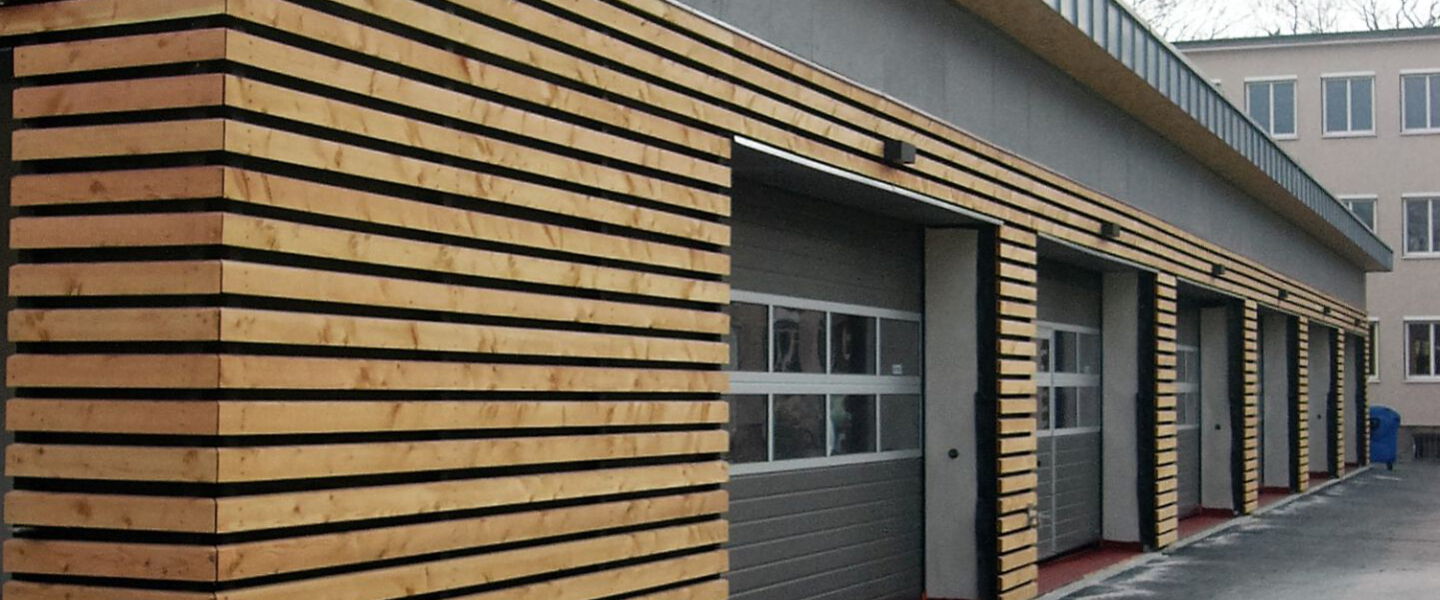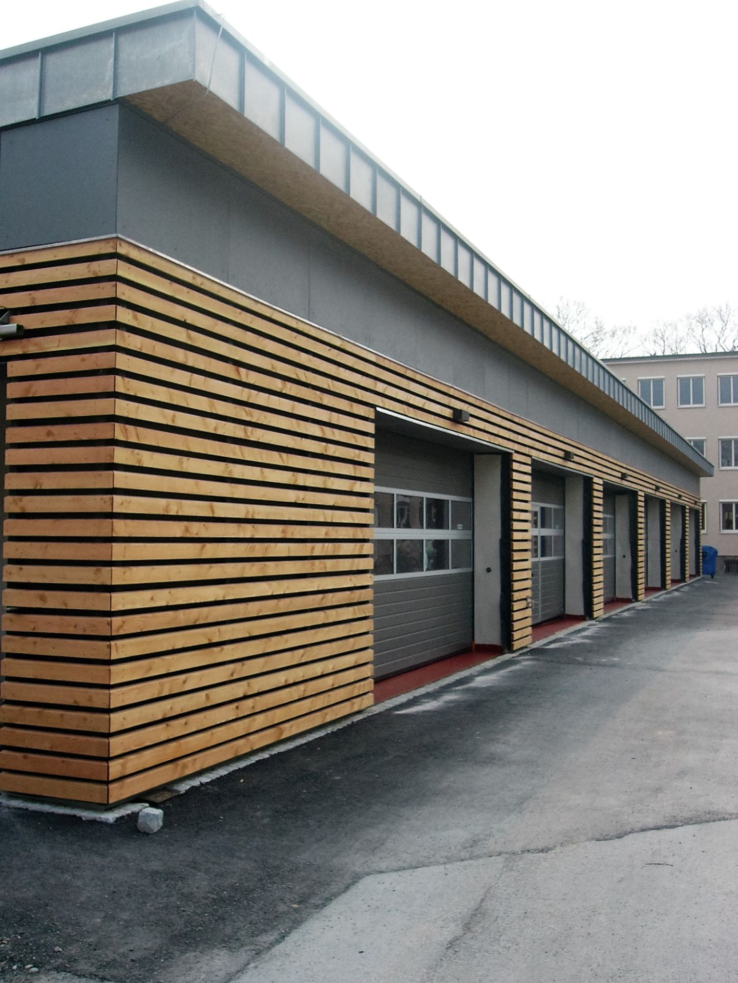 Als Ersatz für das baufällige Garagengebäude aus der Entstehungszeit ist an gleicher Stelle ein Neubau mit Waschhalle errichtet worden, in welchem die Vermessungs- und Dienstfahrzeuge untergestellt werden.