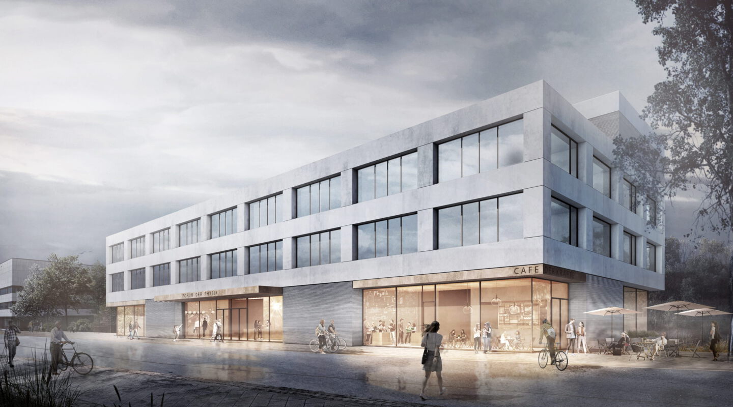 Mit dem Neubau setzt die Ludwig-Maximilians-Universität München den Ausbau des forschungsstarken Physik-Campus am Englischen Garten im Herzen von München fort. Das „Forum der Physik“ mit einer Hauptnutzungsfläche von 4.800 Quadratmetern beinhaltet einen Ausstellungsbereich mit Cafeteria, Seminarräumen und Hörsälen und wird außerdem die neue Heimat des Lehrstuhls für Didaktik. Auch die Büro- und Laborräume der drei Lehrstühle für Meteorologie mit Wetterwarte werden dort untergebracht.